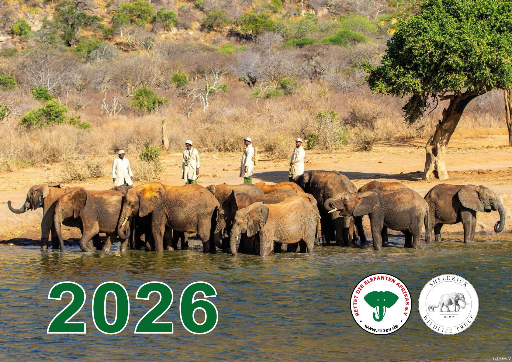 Auch für 2026 gibt es wieder einen Kalender mit ausgesuchten Aufnahmen unserer Waisen-Elefanten-Kinder.